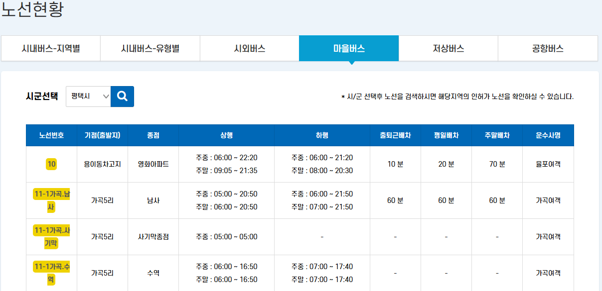 ※ 경기도 평택시에 노선도를 한눈에 볼 수 있게 총정리 했습니다.