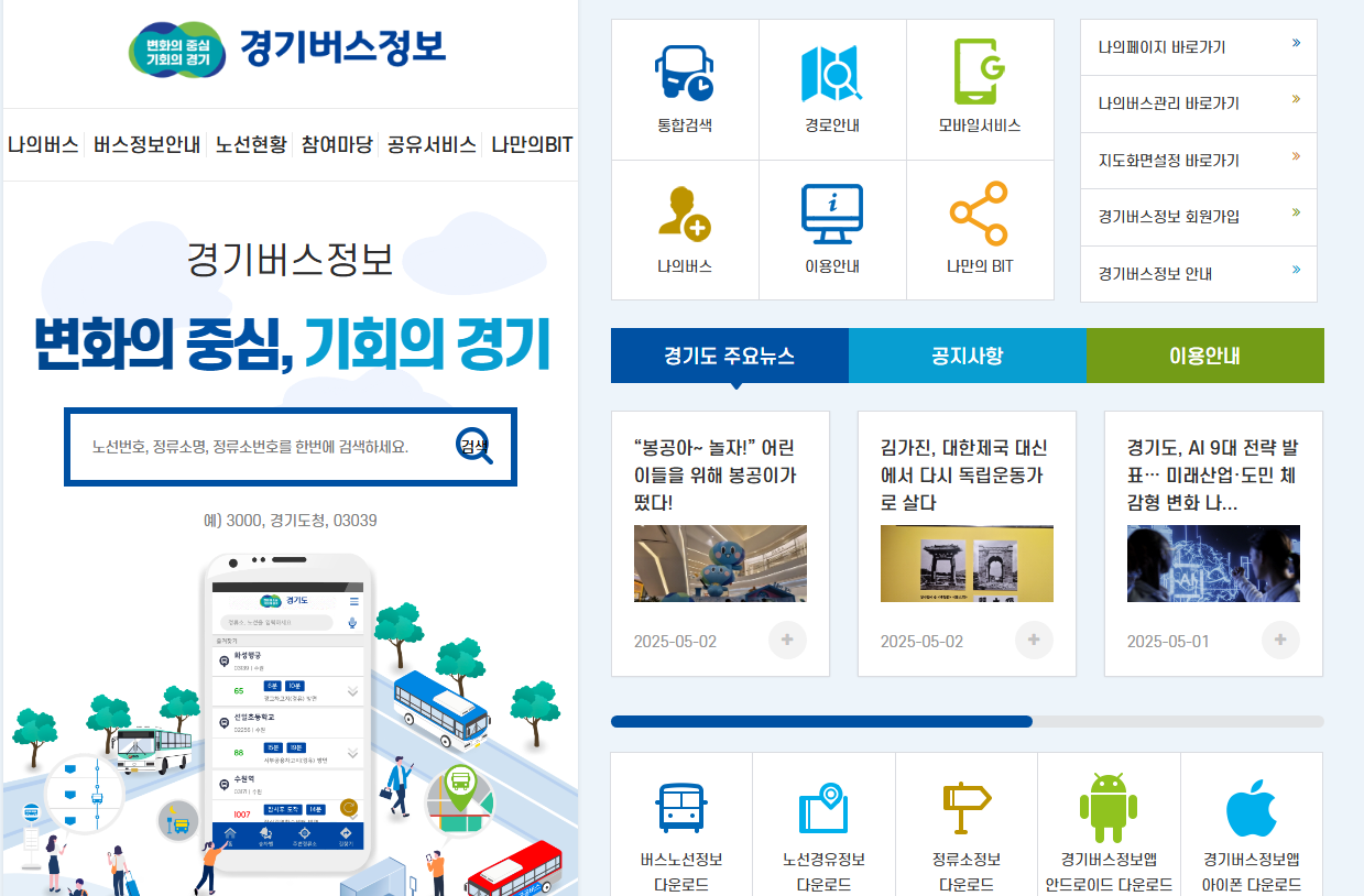 버스노선 정보 /노선 경유 정보 /정류소 정보 /경기버스 정보앱 다운로드