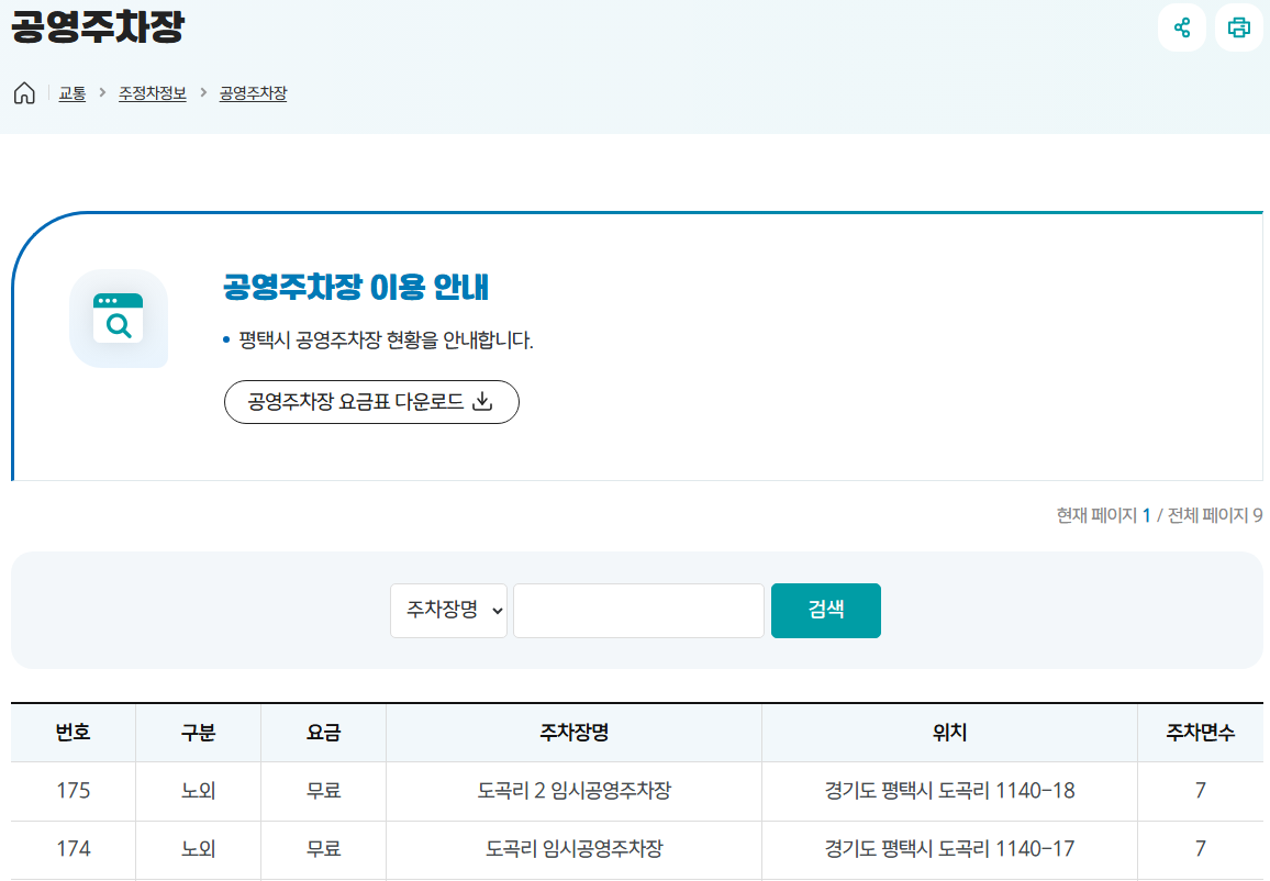 4. 경기도 평택시 공영 주차장 정보 및 다운로드