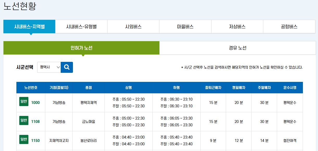경기도에 있는 모든 대중교통시간표를 볼 수 있는