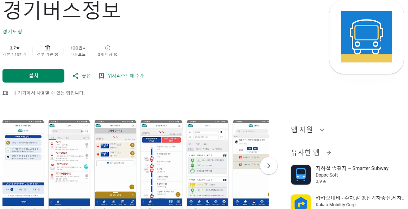 플레이 스토어 에서 경기버스 정보앱 을 검색하면