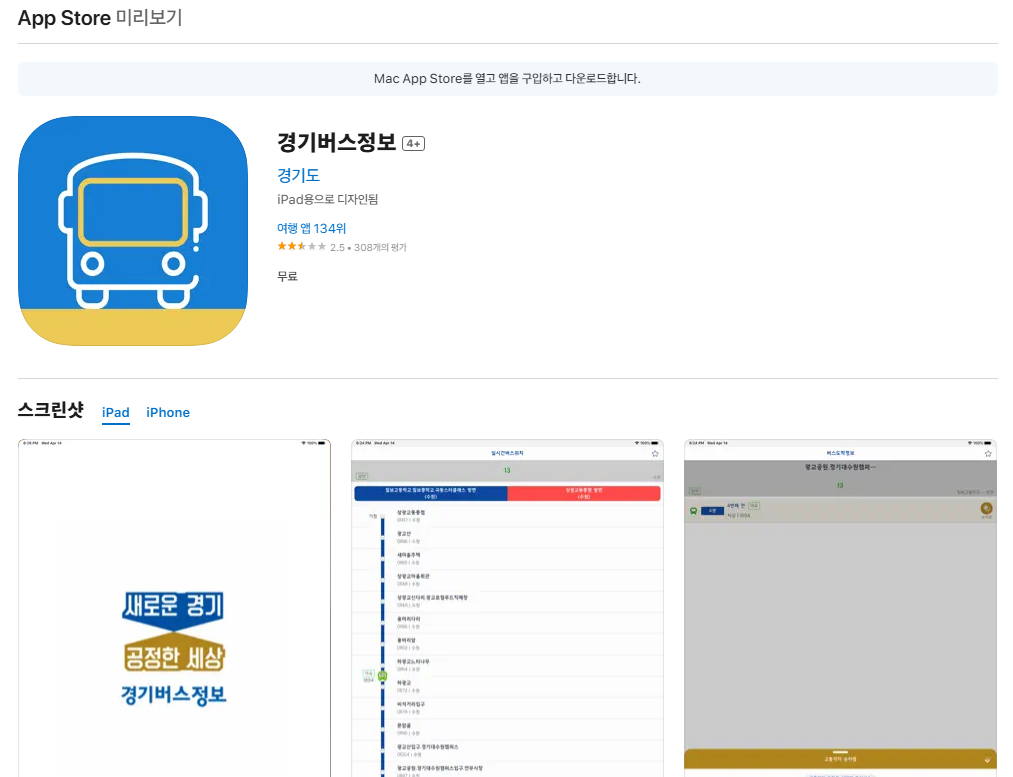 7. 경기버스 정보 앱 다운로드 (애플용)