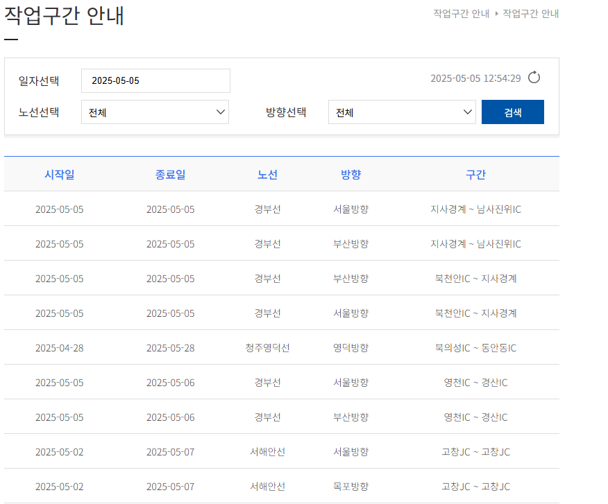 작업구간 안내에서 구간별로 체크 교통이 막힐때