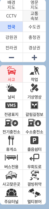 1.교통속보에 (사고,정체,작업)구간을 검색 할 수 있습니다
