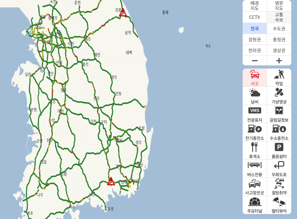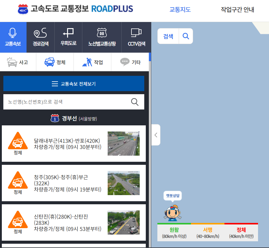 경부고속도로 구간별 cctv 검색으로 교통채증 구간을 한눈에 파악 할 수 있습니다.