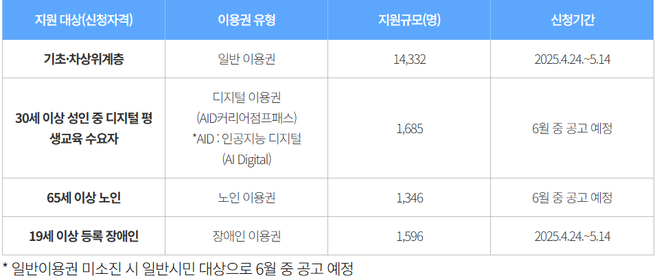 2025년 서울시 평생교육이용권 대상별 지원규모