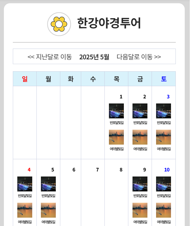 1 >>한강야경 투어 일정<<