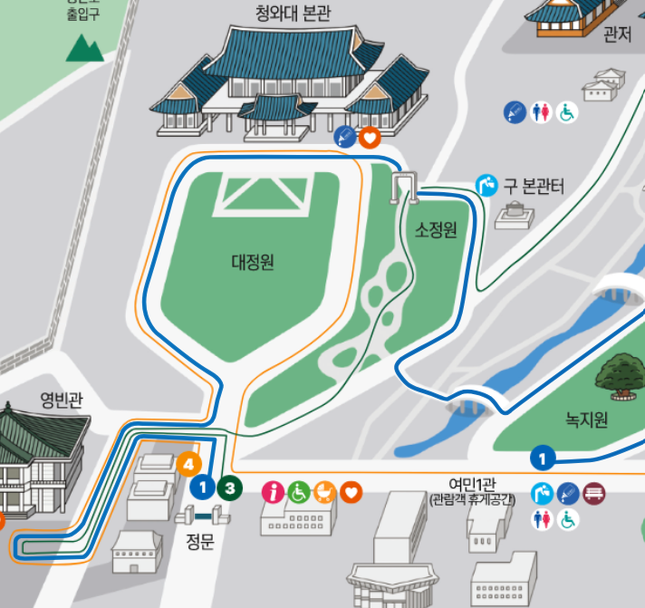 1.청와대 내부 종합안내소(지도상 핑크색 i 부분)